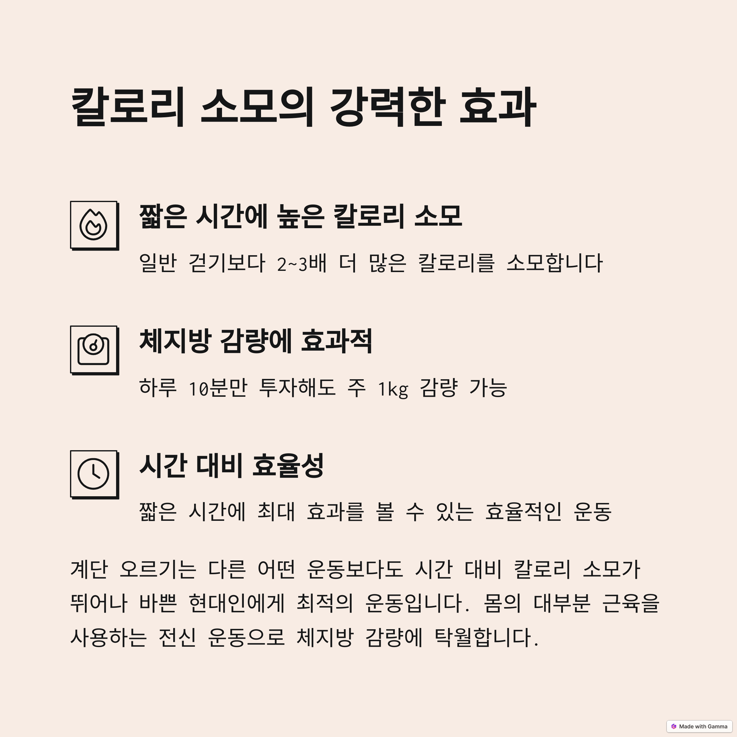 계단 오르기는 체지방 감량과 하체 근력 향상에 탁월한 운동입니다.