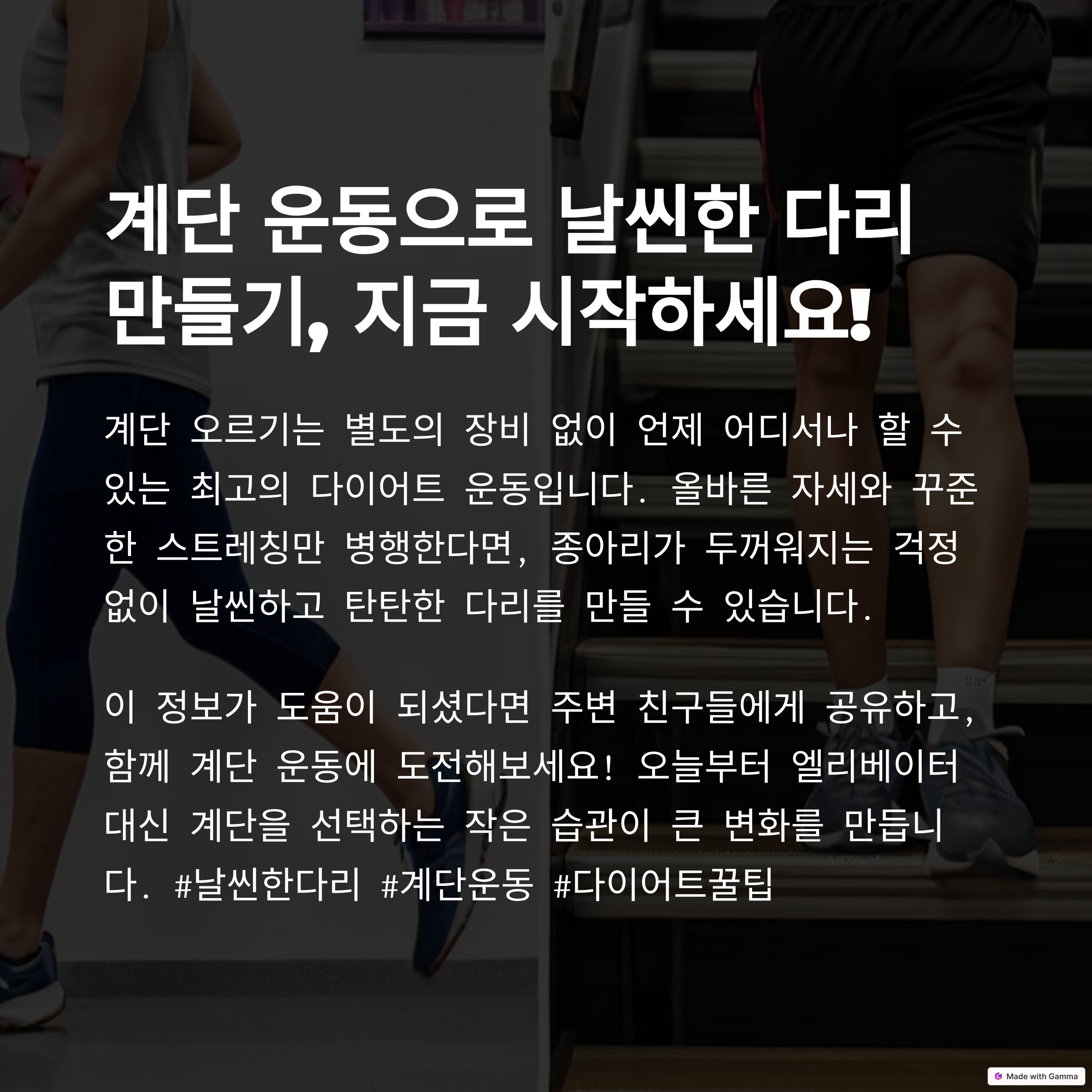 오늘은 계단 오르기의 효과와 종아리를 날씬하게 유지하면서 다이어트하는 방법까지 모두 알려드리겠습니다.