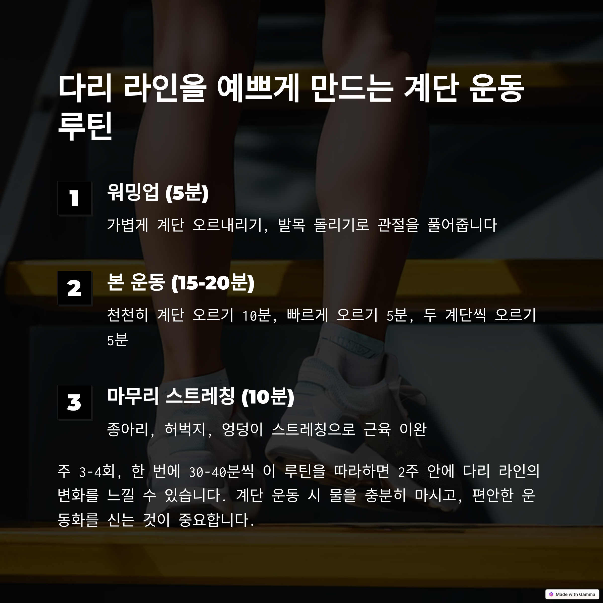 👉 운동 후 스트레칭과 마사지를 병행하면, 더욱 매끈한 다리를 만들 수 있습니다!