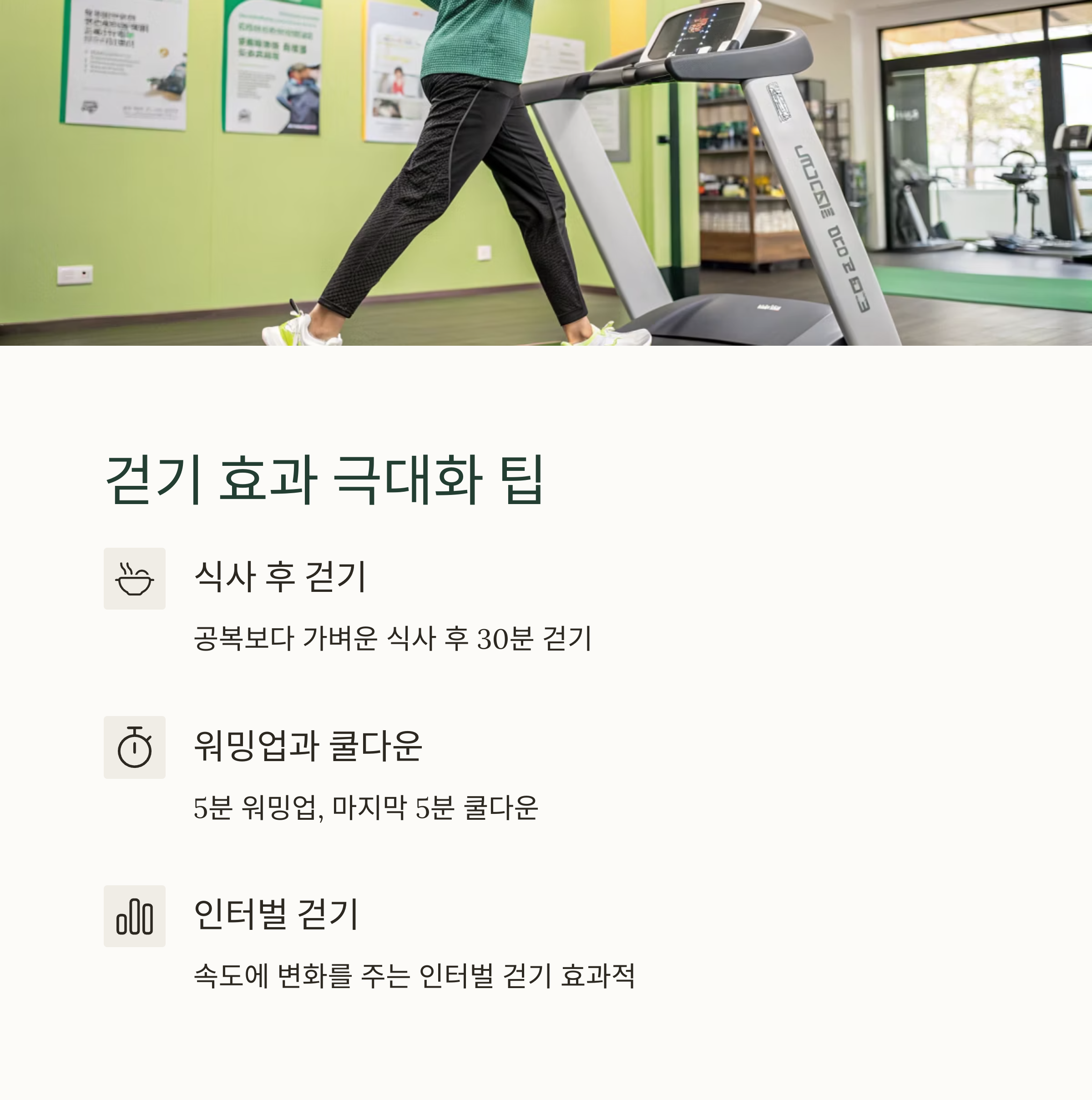 - 공복 상태보다는 가벼운 식사 후 30분 걷기