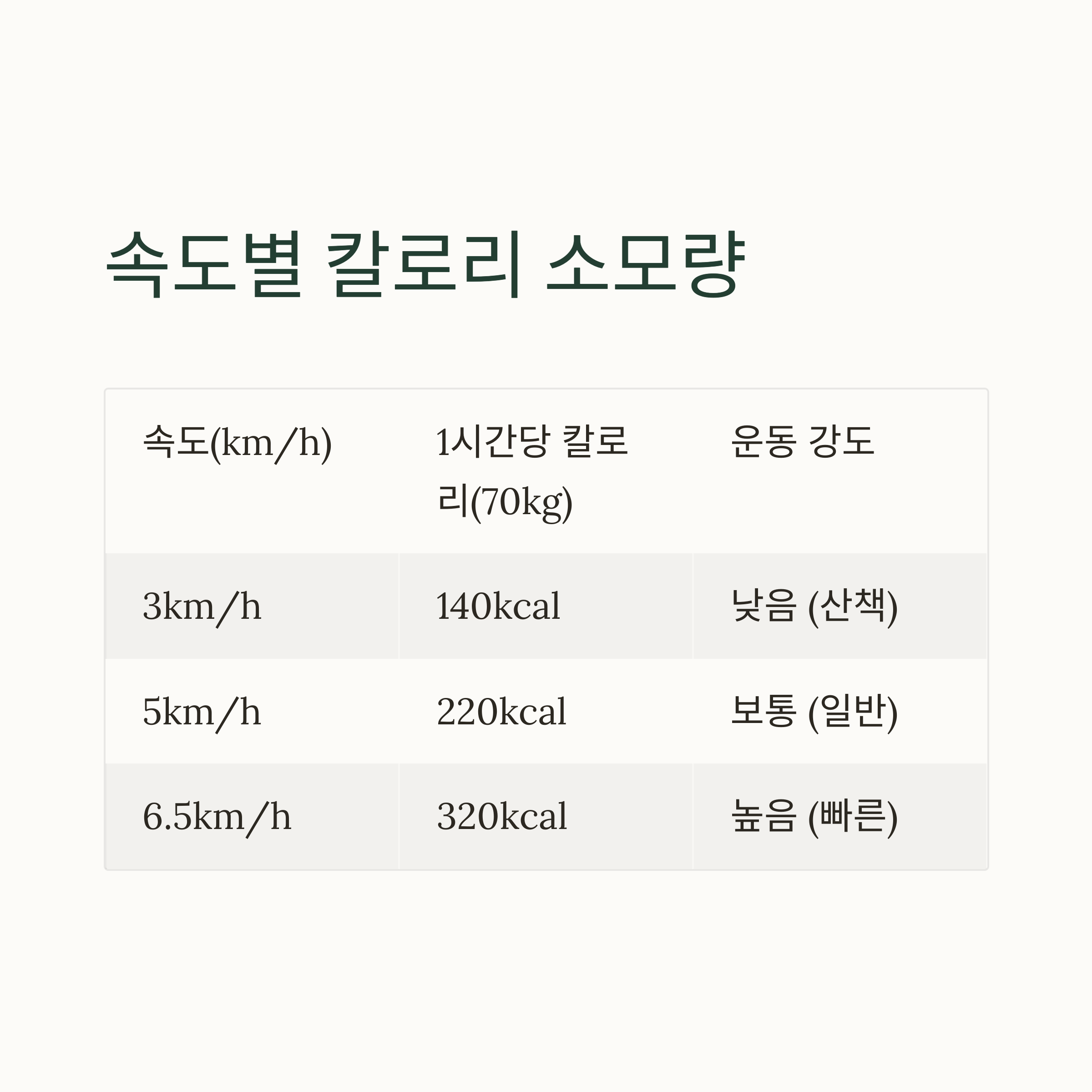 | 3km/h | 140kcal | 낮음 (산책 수준) |