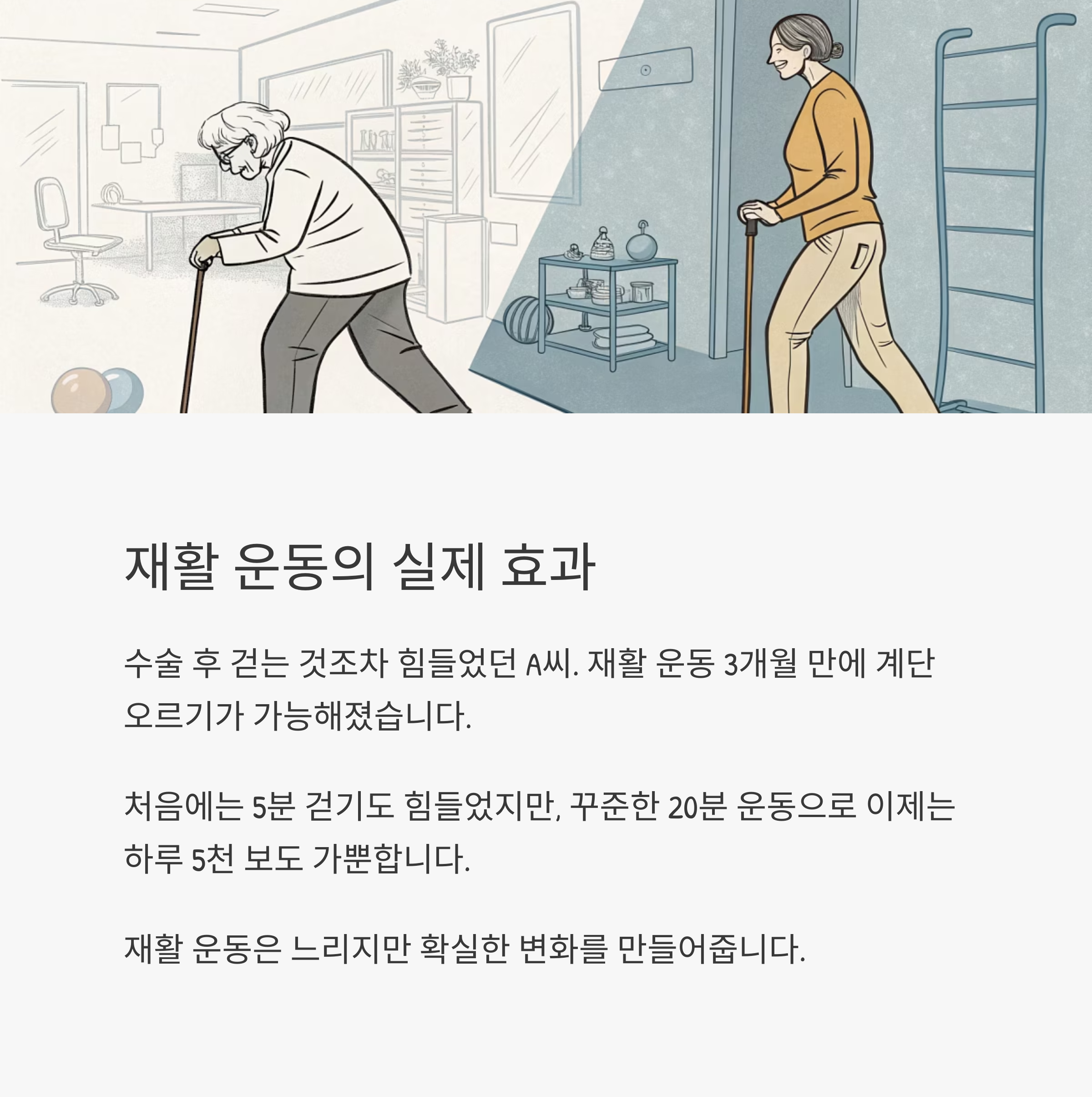"재활 운동은 느리지만 확실한 변화를 만들어줍니다."
