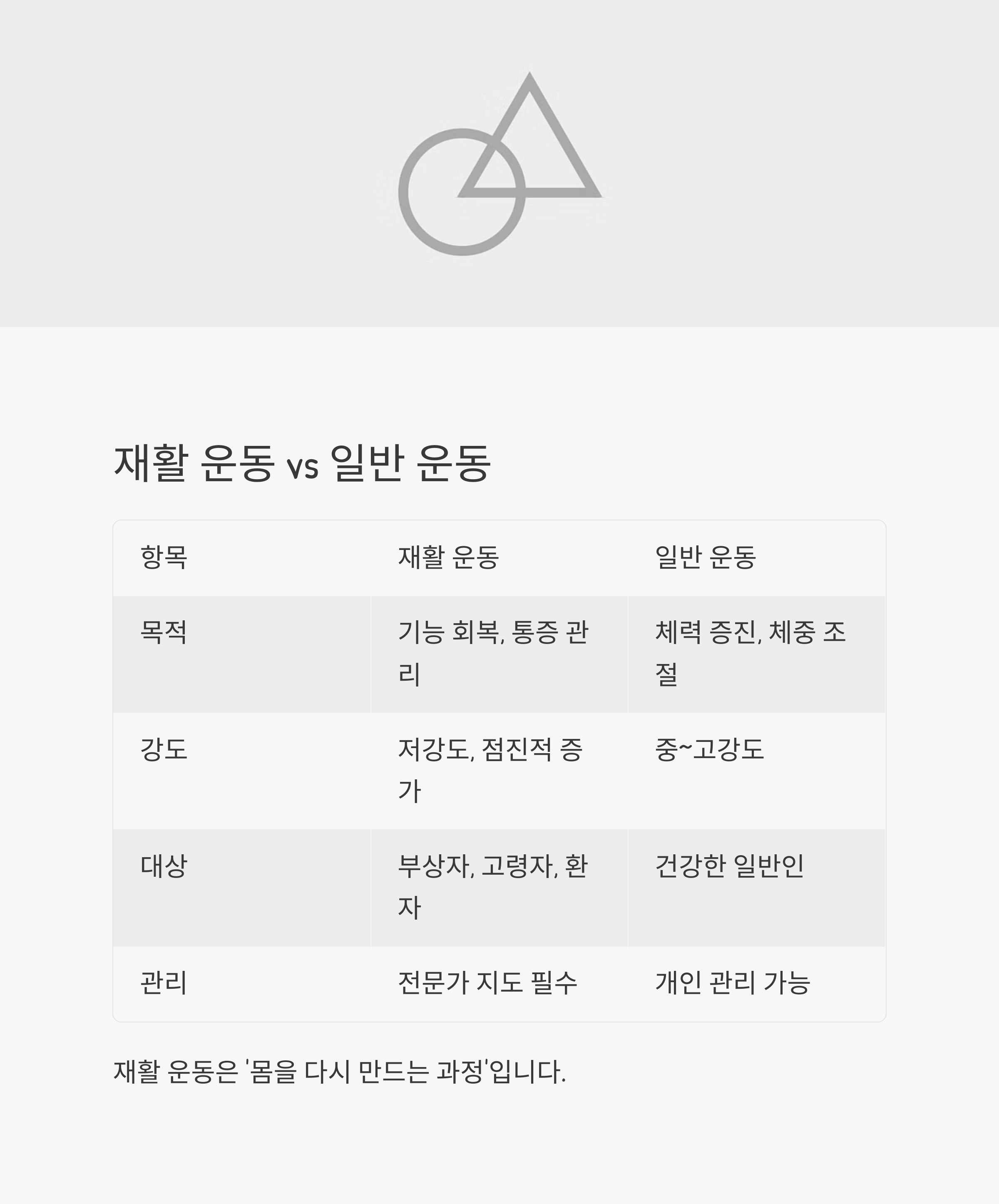 재활 운동 vs 일반 운동 비교
