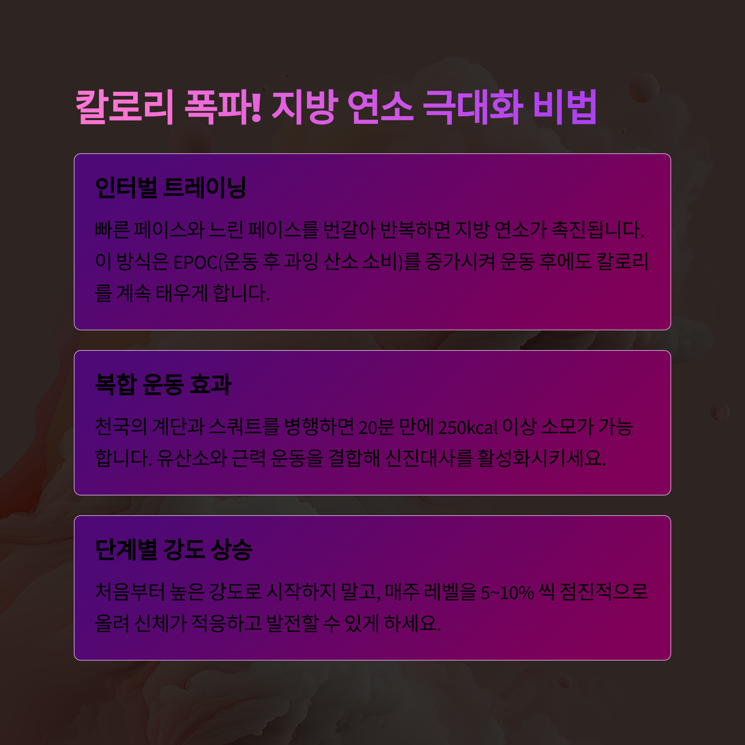 "천국의 계단으로 심박수를 끌어올린 뒤 스쿼트로 근육을 자극"하면