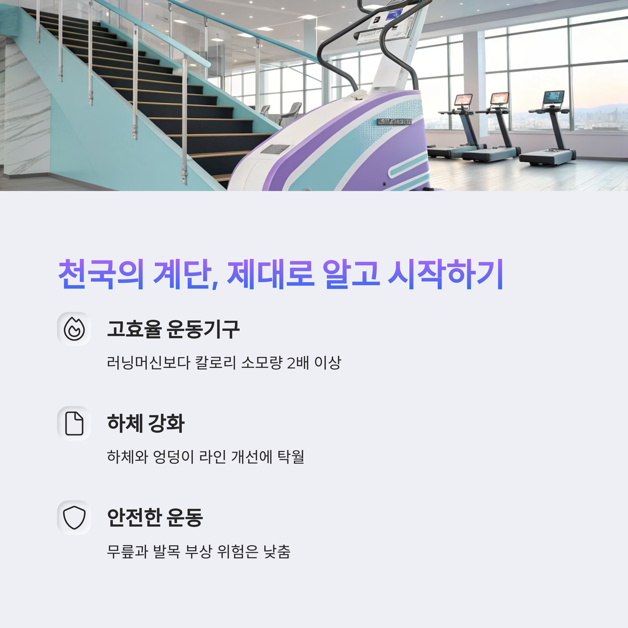 심폐 지구력과 하체 근력을 동시에 단련할 수 있는 고효율 운동기구입니다.