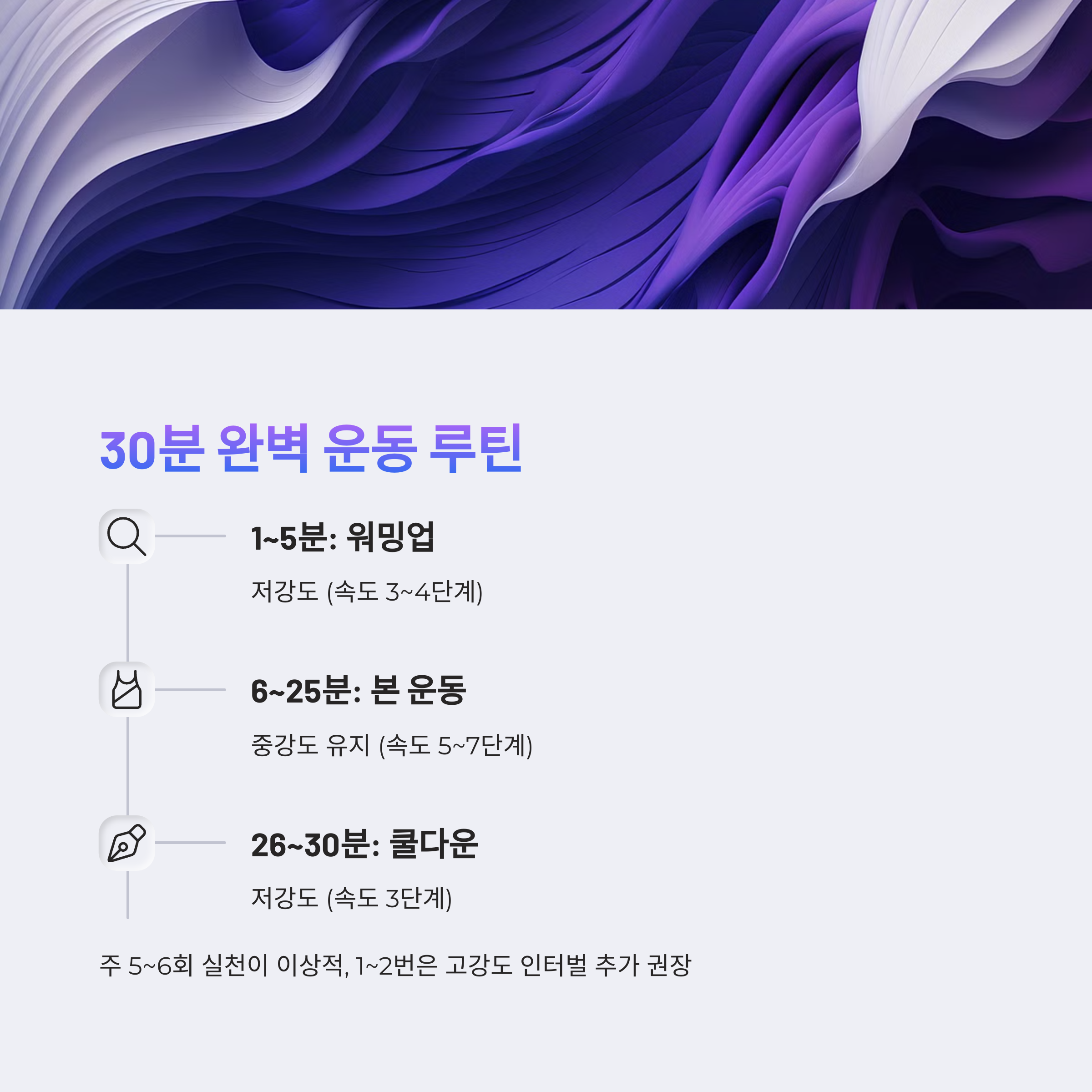 1주일에 1~2번은 고강도 인터벌을 추가해 주면 더욱 좋습니다.