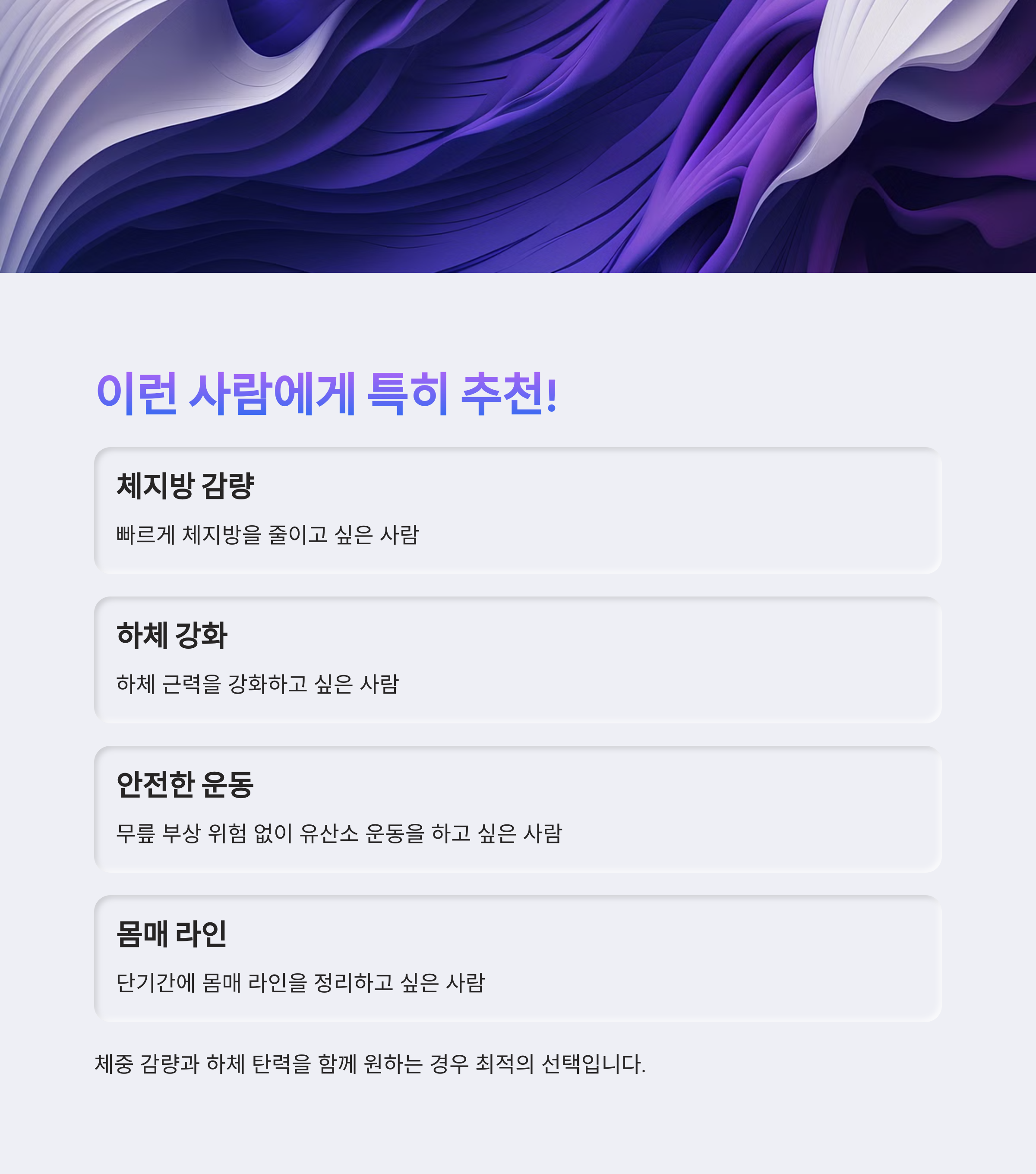 특히, 체중 감량과 하체 탄력을 함께 원하는 경우 천국의 계단은 최적의 선택입니다.
