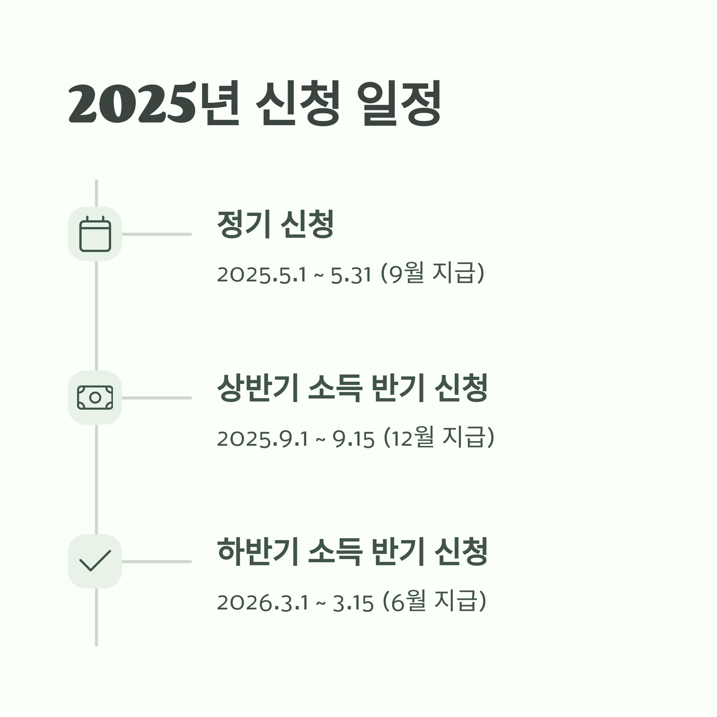 | 신청 기간 | 2025.5.1 ~ 5.31 | 2025.9.1 ~ 9.15 | 2026.3.1 ~ 3.15 |